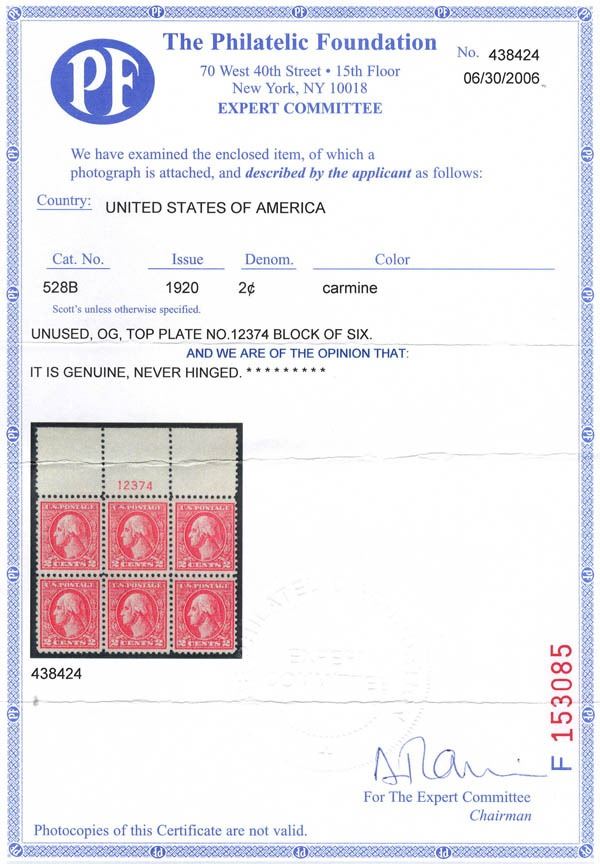 1918, 2¢ Washington, carmine, type VII, offset printing. Scott 528B. F-VF, with 2006 P.F. certificate