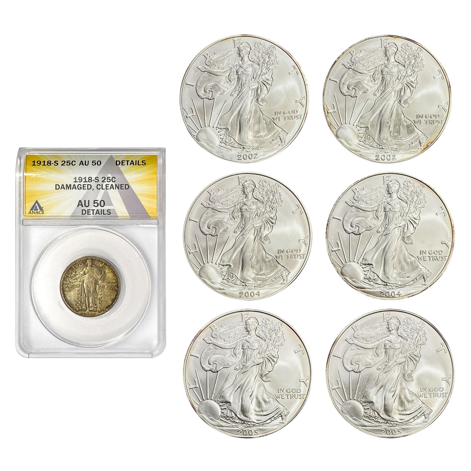 1918-2005 [7] 1 25C, 6 Silver Eagles