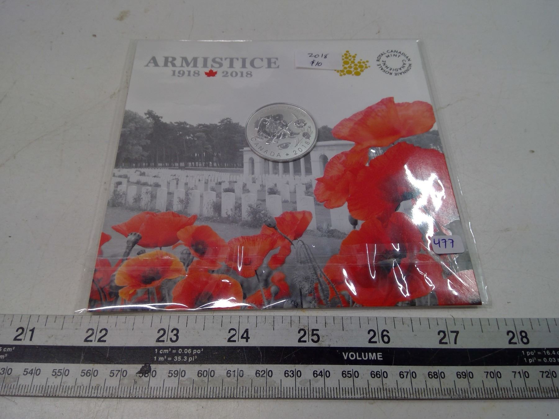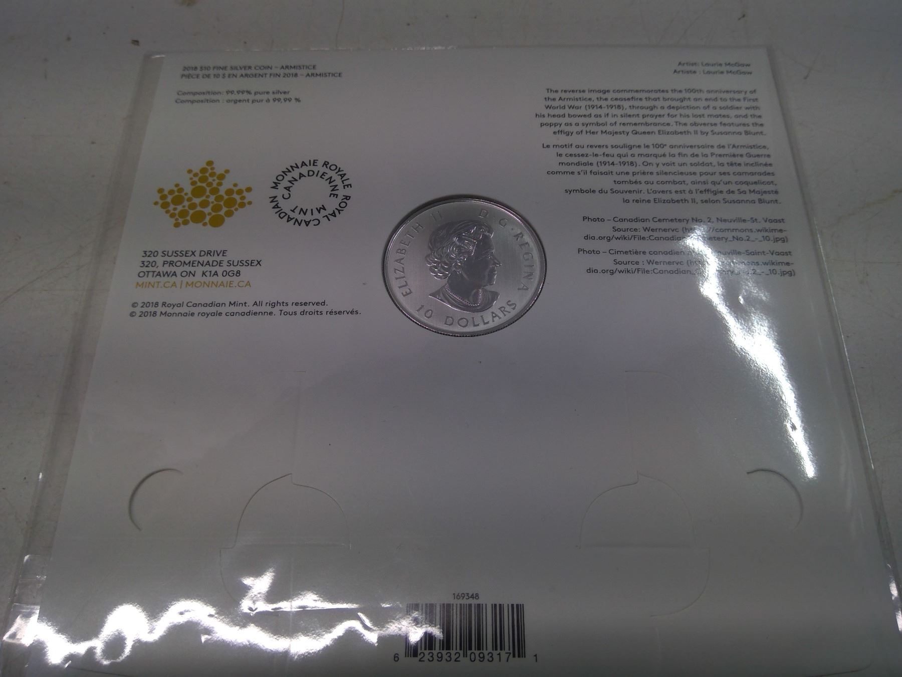 1918 – 2018 Armistice $10. 99.99% pure Silver. Specimen. Housed in its original unopened RCM folder.