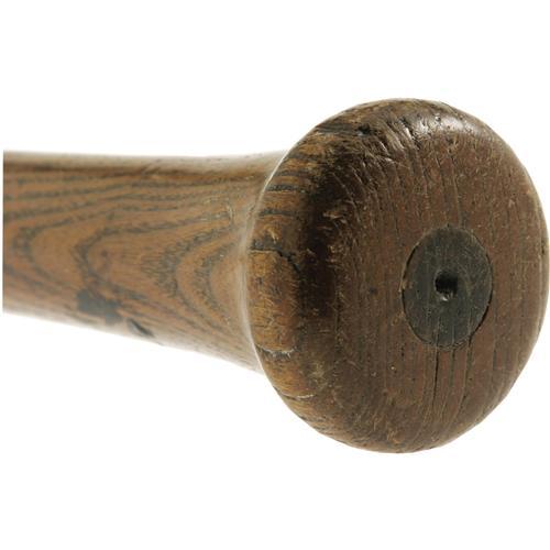 <B>1918-21 Babe Ruth Game Used Bat.</B></I> When one comes across a piece such as this, one that carries such tremendous import within the hobby, and the history of baseball, the mind begins to wander through the possibilities. We consider the four-year span of this bat's production cycle, and realize that the most significant personnel change in the history of sports happened at the center of it. And so was this bat swung by Babe Ruth the Red Sox star, or Babe Ruth the Yankees star? These odds are fifty-fifty, a coin flip. But this much we can state definitively--it was swung by Babe Ruth the season's Home Run King. In each of the four years during which this Hillerich & Bradsby may have seen action, it was Ruth who stood atop the homer heap. Only in 1918 did he fail to double the silver medalist's total by a wide margin, usually approaching three times the total of the runner up. Top slugging percentage also went to the Babe each season from 1918 through 1921, paying further tribute to the power the kid from Baltimore could generate with this bat.<BR><BR> Even a cursory inspection of the barrel of this special club will further validate this assessment, as it is coated with ball, stitch and cleat marks that are evident to the touch. Tremendous vintage punishment leaves us unable to lay down a dime upon its surface without intersection with an ancient scar of cleat or ball. Authenticator John Taube himself describes the use as "heavy" in his assessment of this important artifact, an adjective that is not bandied around lightly by the experts of the game used bat field. He also notes that this bat exhibits the "small version" of Ruth's facsimile signature on the barrel, the style used from the inception of his signature contract dated July 9, 1918 and continuing through the 1921 season. This, of course, allows definitive dating of the model. Taube also notes the well-defined lathe mark on the bottom of the knob, common for bats manufactured during the referenced labeling period. The tremendous size of the bat-thirty-six inches long and just over forty ounces in weight-is vintage Ruth and falls exactly in line with all exemplars of the Babe's Bunyan-esque gamers. In short, this is about as good as it gets for Ruth bats, and certainly as early as we'll ever find for authenticated Hillerich & Bradsbys. Taube concurs, assigning a grade of GU 7 for this elite piece. <I>LOA from John Taube.</B></I>
