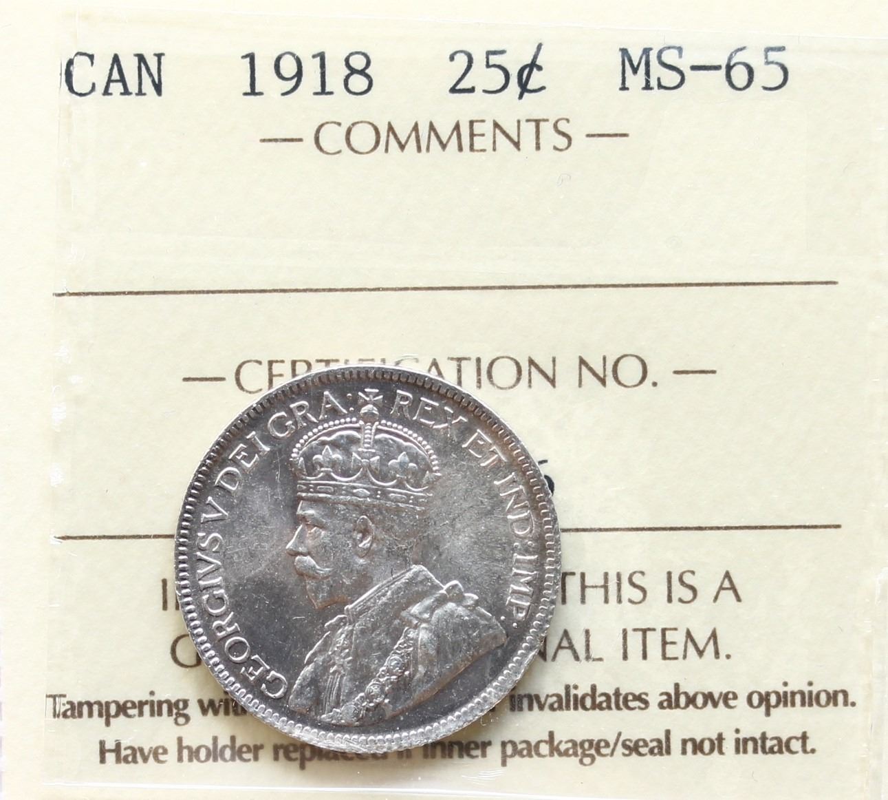 1918 25¢ ICCS Gem Mint State-65. Gem issue with mild mauve peripheral tints.