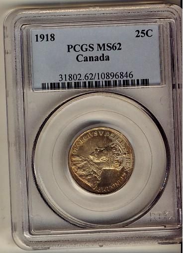 1918 25¢ PCGS MS62. Lustrous with an attractive golden like toning.