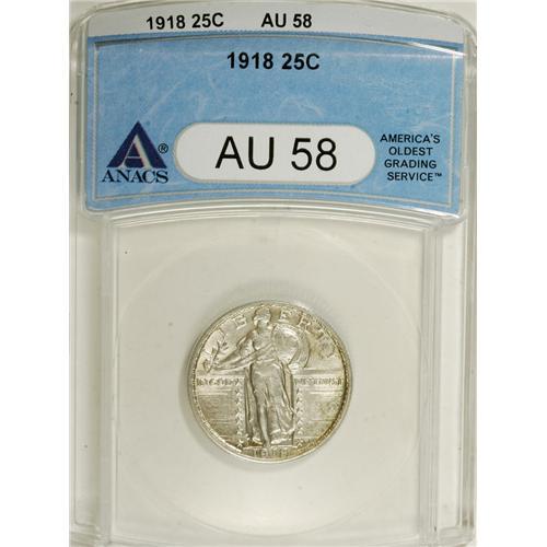 1918 25C AU58 ANACS. NGC Census: (64/542). PCGS Popula
