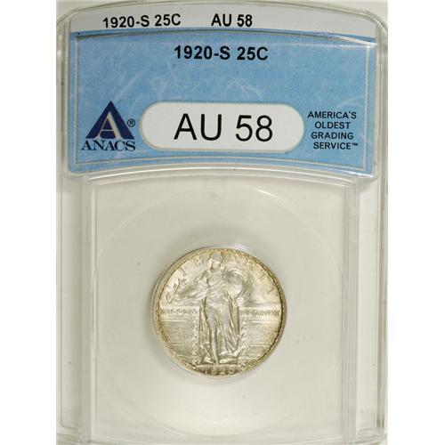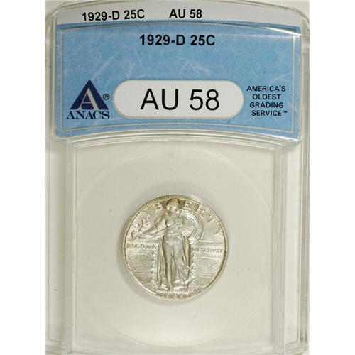 <B>1918 25C AU58 ANACS; 1920-S AU58 ANACS;</B></I> and a <B>1929-D AU58 ANACS.</B></I><BR><BR><b>Shipping:</b> Coins & Currency (<a target="_blank" href="http://www.heritageauctions.com/common/shipping.php">view shipping information</a>)