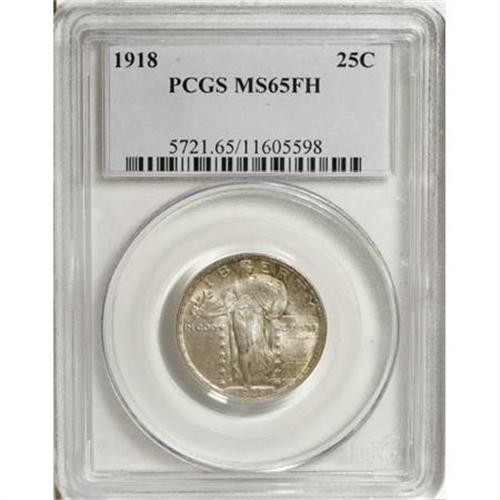 <B>1918 25C MS65 Full Head PCGS.</B></I> Splashes of gold toning enhance the lustrous ivory surfaces of this frosty Gem. Both sides are sharply detailed, include complete head details and sharp shield elements. The latter is a particularly troublesome area of the design, usually lacking full rivets <BR><BR><B>Coin Engraver:</B> Hermon A. MacNeil<BR><BR><b>Shipping:</b> Coins & Currency (<a target="_blank" href="http://www.heritageauctions.com/common/shipping.php">view shipping information</a>)