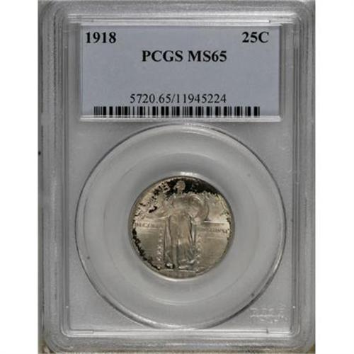 <B>1918 25C MS65 PCGS.</B></I> PCGS Population (63/20). NGC Census: (52/31). Mintage: 14,240,000. Numismedia Wsl. Price for NGC/PCGS coin in MS65: $540. (#5720)<BR><BR><B>Coin Engraver:</B> Hermon A. MacNeil<BR><BR><b>Shipping:</b> Coins & Currency (<a target="_blank" href="http://www.heritageauctions.com/common/shipping.php">view shipping information</a>)