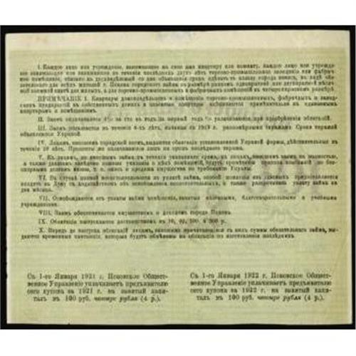 <style type="text/css"> body, td, th { font-family: Arial, Helvetica, sans-serif; font-size: 12px; color: #482424; margin: 0px; padding: 0px; } #header { background-image: url(http://www.bowersandmerena.com/ebay/images/template_v3_01.gif); clear: both; background-color: #590303; border-top-width: 2px; border-top-style: solid; border-top-color: #B38C4F; } #header #header_wrapper { height: 75px; clear: both; width: 800px; margin-right: auto; margin-left: auto; background-image: url(http://www.bowersandmerena.com/ebay/images/template_v3_03.gif); background-repeat: no-repeat; background-position: right; color: #F3EDCC; } #header #header_wrapper #header_logo { float: left; height: 75px; width: 444px; background-image: url(http://www.bowersandmerena.com/ebay/images/template_v3_02.gif); background-repeat: no-repeat; font-size: 10px; text-transform: capitalize; color: #B38C4F; } #header #header_wrapper #header_right { float: left; height: 75px; width: 356px; text-align: right; } #header #header_wrapper #header_right #headerLoginBtn { margin-bottom: 30px; } #header #header_wrapper #header_right input#txtSearch { color: #B49056; border: 1px solid #B49056; width: 175px; padding-top: 3px; padding-right: 3px; padding-bottom: 4px; padding-left: 3px; } #nav { height: 37px; background-image: url(http://www.bowersandmerena.com/ebay/images/template_v3_05.gif); clear: both; } #nav #nav_wrapper { height: 35px; width: 800px; margin-right: auto; margin-left: auto; border-left-width: 1px; border-left-style: solid; border-left-color: #B38C4F; } #nav #nav_wrapper a { padding-right: 15px; padding-left: 15px; border-right-width: 1px; border-right-style: solid; border-right-color: #B38C4F; height: 25px; padding-top: 10px; display: block; float: left; text-decoration: none; font-weight: bold; color: #5D0303; } #nav #nav_wrapper a:hover { color: #B38C4F; } #nav #nav_wrapper #search { float: right; padding-top: 7px; } #nav #nav_wrapper #search #txtSearch { font-family: Arial, Helvetica, sans-serif; font-size: 10px; text-transform: uppercase; color: #D2AE75; border: 1px solid #B38C4F; padding: 3px; } #content_bgd { background-image: url(http://www.bowersandmerena.com/ebay/images/template_v3_09.gif); background-repeat: repeat-y; background-position: center; padding-top: 15px; padding-bottom: 15px; background-color: #FBFBDB; } #content_wrapper { clear: both; height: auto; width: 800px; margin-right: auto; margin-left: auto; } .LotDetailWhite { line-height:normal; font-size:13px; font-family: arial,helvetica,sans-serif; color: White; font-weight: bold; } .LotDetailInformation { line-height:normal; font-size: 13px; font-family: arial,helvetica,sans-serif; } .LotDetailMessage { line-height:normal; font-size: 13px; font-family: arial,helvetica,sans-serif; color: red; } } tr.HeaderAuctionTitle td { color: #000000; font-weight: bold; padding: 2px; background-image: url(http://www.bowersandmerena.com/ebay/images/template_v3_05.gif); background-repeat: repeat-x; border-bottom-width: 1px; border-bottom-style: solid; border-bottom-color: #B38C4F; } table.AuctionSummary a, table.AuctionSummary a:link, table.AuctionSummary a:visited { color: #0000FF; text-decoration: none; } } td.tableHeaderLeft { border-left-width: 1px; border-left-style: solid; border-left-color: #B38C4F; } td.tableHeaderRight { border-right-width: 1px; border-right-style: solid; border-right-color: #B38C4F; } td.tableCellMiddle { border-left-width: 1px; border-left-style: solid; border-left-color: #B38C4F; border-right-width: 1px; border-right-style: solid; border-right-color: #B38C4F; padding: 5px; } tr.footer td { border-top-width: 1px; border-top-style: solid; border-top-color: #B38C4F; } </style> </head> <body> <div id="header"> <div id="header_wrapper"> <div id="header_logo"> </div> <div id="header_right"> </div> </div> </div> <div id="nav"> <div id="nav_wrapper"> <a href="http://www.bowersandmerena.com">Our eBayLive Auctions</a> <a href="#PaymentInfo">Payment Information</a> <a href="#ShippingInfo">Shipping Information</a> <a href="#About">About Bowers and Merena</a> </div> </div> <div id="content_bgd"> <div id="content_wrapper"> <table width="100%" border="0" cellpadding="5" cellspacing="0" class="AuctionSummary"> <tbody> <tr class="HeaderAuctionTitle" style="height: 25px;"> <td align="left" class="tableHeaderLeft" > </td> <td align="center" class="tableHeaderRight"> <span style="font-size: large;">Lot #2414. 1918 4% Private Russian Bond Issue. </span> </td> </tr> <tr> <td colspan="3" class="tableCellMiddle"> 1918, 100 Rubles, P-Unlisted, VF-XF condition.