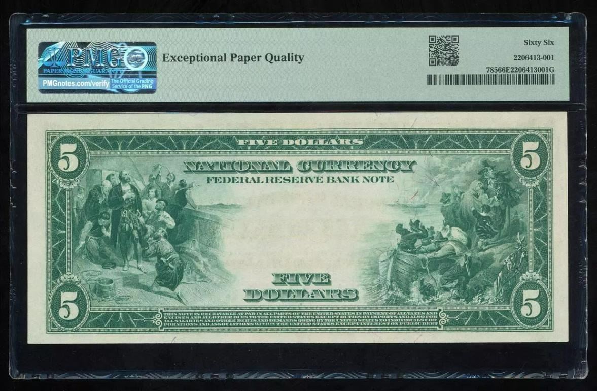 One 1918 $5 Cleveland FRBN PMG 66EPQ.