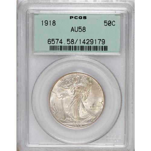 1918 50C AU58 PCGS. PCGS Population (83/479). NGC Cens