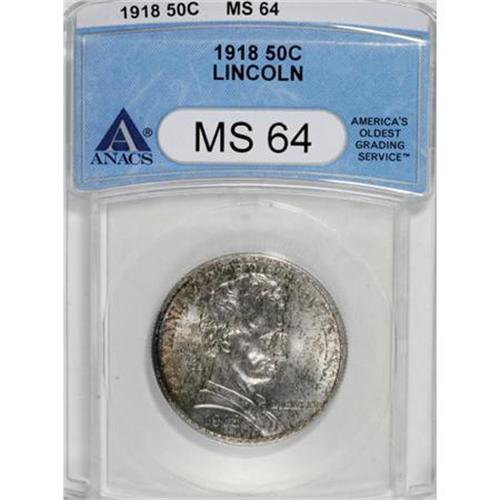 <B>1918 50C Lincoln MS64 ANACS.</B></I> NGC Census: (1554/1348). PCGS Population (1918/1682). Mintage: 100,058. (#9320)<BR><BR><b>Shipping:</b> Coins & Currency (<a target="_blank" href="http://www.heritageauctions.com/common/shipping.php">view shipping information</a>)