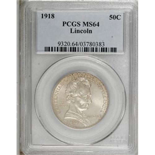 <B>1918 50C Lincoln MS64 PCGS.</B></I> . PCGS Population (1940/1714). NGC Census: (1571/1359). Mintage: 100,058. (#9320)<BR><BR><b>Shipping:</b> Coins & Currency (<a target="_blank" href="http://www.heritageauctions.com/common/shipping.php">view shipping information</a>)