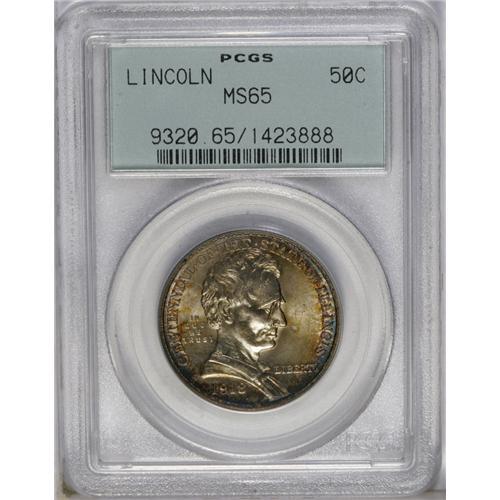 <B>1918<50C> Lincoln MS65 PCGS.</B></I> A lustrous Gem example of this early commemorative, boldly struck with only a few tiny marks in the prime focal areas. Light orange patina on the obverse has a complement in peripheral violet toning.