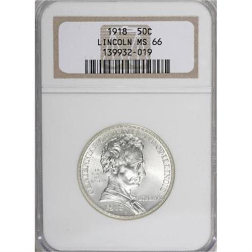 <B>1918 50C Lincoln MS66 NGC.</B></I> NGC Census: (261/71). PCGS Population (498/86). Mintage: 100,058. (#9320)<BR><BR><b>Shipping:</b> Coins & Currency (<a target="_blank" href="http://www.heritageauctions.com/common/shipping.php">view shipping information</a>)