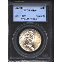 1918 50C Lincoln MS66 PCGS. The otherwise frosty-white surfaces reveal whispers of golden-tan iridescence here and there. There are no singularly mentionable surface blemishes on either side.From the Tom Valos Collection. Important notice: We expect to be auctioning lots at the rate of 200-250 per hour. Sometimes eBay Premier live bid software cannot keep up with that pace, so we strongly recommend that you place a realistic proxy bid now as insurance to avoid disappointment. Also please note that all Heritage/CAA lots purchased through eBay Premier carry a 20% Buyer's Premium.