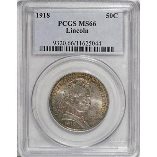 <B>1918 50C Lincoln MS66 PCGS.</B></I> Accompanying the lot is a fascinating 1901 book, "Yarns and Stories by Abraham Lincoln, America's Greatest Story Teller," by Col. Alexander K. McClure. The book is in VG condition. PCGS Population (479/86). NGC Census: (261/72). Mintage: 100,058. (#9320)<BR><I>From The Frank DuVall Collection of U.S. Commemoratives.</B></I><BR><BR><b>Shipping:</b> Coins & Currency (<a target="_blank" href="http://www.heritageauctions.com/common/shipping.php">view shipping information</a>\)