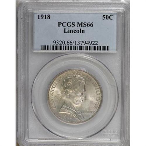 <B>1918 50C Lincoln MS66 PCGS.</B></I> Both sides of this pleasing Premium Gem show strong luster beneath a thin veil of gold-gray patina. This example's bold strike highlights the sculptural qualities of this early commemorative design.<BR><BR><b>Shipping:</b> Coins & Currency (<a target="_blank" href="http://www.heritageauctions.com/common/shipping.php">view shipping information</a>)