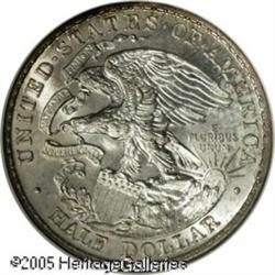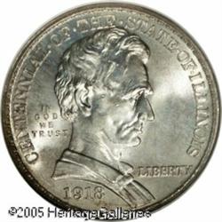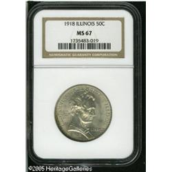 <B>1918 50C Lincoln MS67 NGC.</B></I> An extraordinary Lincoln/Illinois commemorative that exhibits pinpoint sharpness and a few splashes of delicate orange patina on the obverse. Inspection with a glass reveals a pair of inconspicuous milling marks in Lincoln's hair. Population: 41 in 67, 2 finer (1/05). Lot:8515