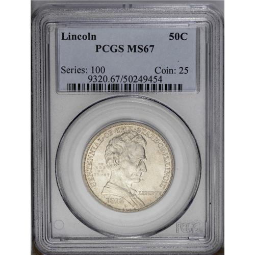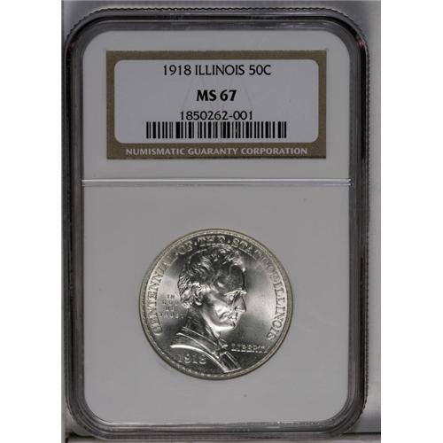 <B>1918<50C> Lincoln MS67 NGC.</B></I> Completely untoned with radiant mint frost that absolutely jumps off the surfaces. Both sides are fully brought up in all areas. A worthwhile Superb Gem. Census: 62 in 67, 2 finer (5/06).