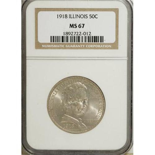 <B>1918 50C Lincoln MS67 NGC.</B></I> Lovely champagne-gray coloration and intense satiny luster are the standout features of this remarkable example. The design elements are boldly rendered, and the surfaces are nearly pristine. Census: 68 in 67, 4 finer (1/08). <BR><BR><b>Shipping:</b> Coins & Currency (<a target="_blank" href="http://www.heritageauctions.com/common/shipping.php">view shipping information</a>)