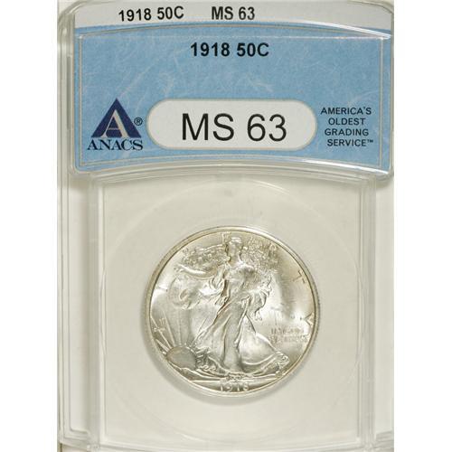 1918 50C MS63 ANACS. Both sides of this pleasing examp