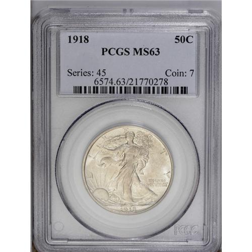 1918 50C MS63 PCGS. Fully brilliant and highly lustrou 1918[50C] MS63 PCGS.