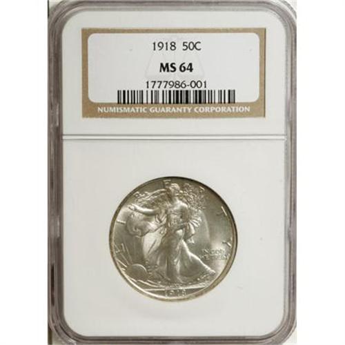 <B>1918 50C MS64 NGC.</B></I> Pleasing overall detail and frosty luster are the prime draws for this Choice silver-gray example. An attractive, minimally marked representative of this earlier P-mint Walker.<BR><I>From The Mario Eller Collection, Part One.</B></I><BR><BR><B>Coin Engraver:</B> Adolph A. Weinman<BR><BR><b>Shipping:</b> Coins & Currency (<a target="_blank" href="http://www.heritageauctions.com/common/shipping.php">view shipping information</a>)