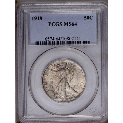 1918 50C MS64 PCGS. A smoke-gray overlay with a few da 1918[50C] MS64 PCGS.
