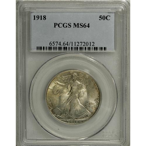 1918 50C MS64 PCGS. Well struck with silver-gray tonin