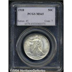 <B>1918<50C> MS65 PCGS.</B></I> This thickly frosted representative is uncommonly smooth for the issue. The strike is as close to full as one should expect for an early date of this type, and the frosty mint luster swirls around both sides in the absence of outwardly distracting abrasions. Worthy of inclusion in an advanced Walking Liberty Half Dollar collection.<BR><I>From The Dr. Frank Lanza Collection of Walking Liberty Half Dollars.</B></I> <BR><BR><B>Important notice:</B> Heritage usually auctions material at the rate of 200-250 lots per hour. On some occasions eBay Live bid software or the Internet may not be able to keep up with the pace of the auction. We recommend placing a realistic absentee bid now as insurance to avoid disappointment. Occasionally the auctioneer may eliminate or reject an eBay Live bid, and the auctioneer may also reopen a lot after the close of the eBay live bidding (usually because we missed an audience bid), and may reject your bid even if it shows you as the winning bidder. By bidding via eBay Live, you agree that Heritage may award the lot to another bidder at its sole discretion under the circumstances described above or any other reasonable circumstances. Since eBay bids are not shown to us until we open the lot on the floor, we treat those bids just like floor bids. In most cases the floor responds before the eBay bid is presented to us, due to Internet lag time, so for consistency we have made it a policy that floor bids are always considered first over tie eBay live bids. Also please note that all Heritage lots purchased through eBay Live carry a 20% Buyer's Premium. Please make sure you read the Terms and Conditions before you bid. </span></font></tr></table></td></tr></table>