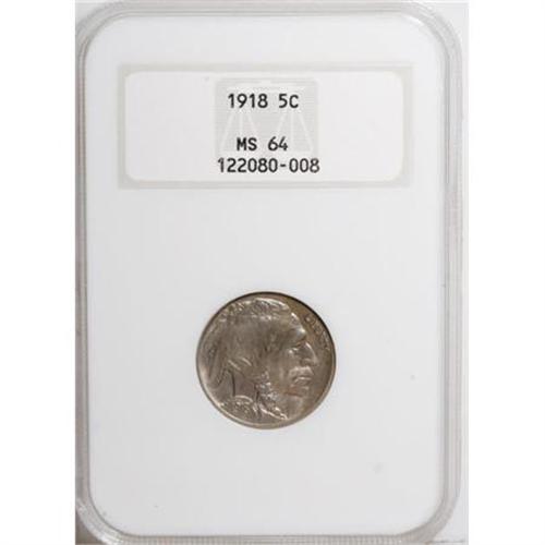 <B>1918 5C MS64 NGC.</B></I> NGC Census: (190/69). PCGS Population (328/200). Mintage: 32,086,314. Numismedia Wsl. Price for NGC/PCGS coin in MS64: $420. (#3937)<BR><BR><B>Coin Engraver:</B> James E. Fraser<BR><BR><b>Shipping:</b> Coins & Currency (<a target="_blank" href="http://www.heritageauctions.com/common/shipping.php">view shipping information</a>)