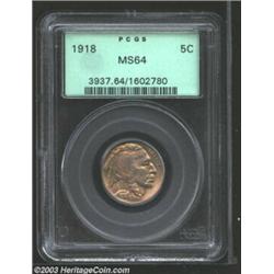 <TR><TD width="100%"><TABLE cellSpacing=1 cellPadding=3 width="100%" border=0><TBODY><TR><TD width="100%" bgColor=#79735c><FONT face=arial color=#ffffff size=3><B>Description</B> </FONT></TD></TR><TR><TD width="100%" bgColor=#ffffff><FONT face=arial size=2><B>1918 5C MS64 PCGS.</B></I> Sharply struck with satiny, amber and olive-toned surfaces, and a small degree of wispy "chatter" near the center of each side. </FONT></TD></TR></TBODY></TABLE></TD></TR></TBODY></TABLE><BR><A name=PricesRealized></A><TABLE cellSpacing=0 cellPadding=0 width="100%" bgColor=#000000 border=0><TBODY><TR><TD width="100%"><TABLE cellSpacing=1 cellPadding=3 width="100%" border=0><TBODY><TR><TD width="100%" bgColor=#79735c><A name=PR><FONT face=arial color=#ffffff size=3><B>Previous Prices from Heritage Auctions</B> </FONT></A></TD></TR><TR><TD bgColor=#f6f6ed><TABLE cellSpacing=0 cellPadding=0 width="100%" border=1><TBODY><TR><TD align=middle width="33%"><B>Date</B></TD><TD align=middle width="33%"><B>Service</B></TD><TD align=middle width="33%"><B>Price</B></TD></TR><TR bgColor=whitesmoke><TD width="33%"><B>05/27/2003</B></TD><TD width="33%">PCGS</TD><TD width="33%">$379.50</TD></TR><TR bgColor=whitesmoke><TD width="33%"><B>04/27/2002</B></TD><TD width="33%">PCGS</TD><TD width="33%">$368.00</TD></TR><TR bgColor=whitesmoke><TD width="33%"><B>10/06/2001</B></TD><TD width="33%">PCGS</TD><TD width="33%">$299.00</TD></TR><TR bgColor=whitesmoke><TD width="33%"><B>01/23/2001</B></TD><TD width="33%">PCGS</TD><TD width="33%">$350.00</TD></TR><TR bgColor=whitesmoke><TD width="33%"><B>06/03/1998</B></TD><TD width="33%">PCGS</TD><TD width="33%">$412.50</TD></TR><TR bgColor=whitesmoke><TD width="33%"><B>02/12/2002</B></TD><TD width="33%">NGC</TD><TD width="33%">$310.50</TD></TR><TR bgColor=whitesmoke><TD width="33%"><B>06/06/2000</B></TD><TD width="33%">NGC</TD><TD width="33%">$360.00</TD></TR><TR bgColor=whitesmoke><TD width="33%"><B>10/01/2002</B></TD><TD width="33%">ANACS</TD><TD width="33%">$345.00</TD></TR></TBODY></TABLE></TD></TR><TR><TD bgColor=#ffffff><FONT face=arial size=1 ?>PLEASE NOTE: All prices realized reflect the final hammer price PLUS the buyer's premium in auctions that charge a buyer's premium. Each item has a notation at the top of the listing indicating whether that lot included a buyer's premium. Example: A item that sells with a final hammer price of $100 and a 20% buyer's premium will display with a price realized of $120. All information listed is intended to be as accurate as possible, but errors are possible. Please use this guide carefully and inform us of any inaccuracies. </FONT></TD></TR></TBODY></TABLE></TD></TR></TBODY></TABLE><BR><TABLE cellSpacing=0 cellPadding=0 width="100%" bgColor=#000000 border=0><TBODY><TR><TD width="100%"><TABLE cellSpacing=1 cellPadding=3 width="100%" border=0><TBODY><TR><TD width="100%" bgColor=#79735c colSpan=6><FONT face=arial color=#ffffff size=3><B>Price Guide*</B> </FONT></TD></TR><TR bgColor=#f6f6ed><TD align=middle><B>Grade</B> </TD><TD align=middle><B>Coin World<BR>(Trends)</B> </TD><TD align=middle><B>Numismedia<BR>Retail</B> </TD><TD align=middle><B>Numismedia<BR>Wholesale</B> </TD><TD align=middle><B>Coin<BR>Universe</B> </TD><TD align=middle><B>Heritage<BR>Value Index</B> </TD></TR><TR bgColor=#ffffff><TD align=middle>63</TD><TD align=right>$250.00</TD><TD align=right>$265.00</TD><TD align=right>$221.00</TD><TD align=right>$260.00</TD><TD align=right>$178.50</TD></TR><TR style="FONT-WEIGHT: bold" bgColor=#cccfdd><TD align=middle>64</TD><TD align=right>$475.00</TD><TD align=right>$450.00</TD><TD align=right>$360.00</TD><TD align=right>$515.00</TD><TD align=right>$383.88</TD></TR><TR bgColor=#ffffff><TD align=middle>65</TD><TD align=right>$1,400.00</TD><TD align=right>---</TD><TD align=right>$1,100.00</TD><TD align=right>$1,750.00</TD><TD align=right>$1,086.13</TD></TR><TR bgColor=#ffffff><TD colSpan=6><FONT size=1>*All information listed is intended to be as accurate as possible, but errors are possible. No item may be returned or refused based on this information which is provided as a service to our customers. You should contact each pricing source directly to determine the accuracy of this information. </FONT></TD></TR></TBODY></TABLE></TD></TR></TBODY></TABLE><BR><TABLE cellSpacing=0 cellPadding=0 width="100%" bgColor=#000000 border=0><TBODY><TR><TD width="100%"><TABLE cellSpacing=1 cellPadding=3 width="100%" border=0><TBODY><TR><TD width="100%" bgColor=#79735c><FONT face=arial color=#ffffff size=3><B>Population Guide</B> </FONT></TD></TR><TR bgColor=#ffffff><TD align=middle><!-- Begin Output of Population Grid--><TABLE cellSpacing=0 cellPadding=0 width="100%" border=0><TBODY><TR><TD vAlign=center><TABLE cellSpacing=0 width="100%" border=1 cellsadding="3"><TBODY><TR><TD vAlign=center><TABLE cellSpacing=0 cellPadding=3 width="100%" border=1><TBODY><TR><TD vAlign=center align=middle bgColor=#f0f1e8 colSpan=2 <CENTER><FONT face=Arial size=2><B>PCGS Pop </B></FONT><CENTER></CENTER></TD><TD vAlign=center align=middle bgColor=#f0f1e8 colSpan=2><CENTER><FONT face=Arial size=2><B>NGC Pop</B></CENTER></FONT></TD></TR><TR><TD vAlign=center><FONT face=Arial size=2>(64)</FONT> </TD><TD vAlign=center align=right><FONT face=Arial size=2>286</FONT> </TD><TD vAlign=center><FONT face=Arial size=2>(64)</FONT> </TD><TD vAlign=center align=right><FONT face=Arial size=2>148</FONT> </TD></TR><TR><TD vAlign=center><FONT face=Arial size=2>(>64)</FONT> </TD><TD vAlign=center align=right><FONT face=Arial size=2>153</FONT> </TD><TD vAlign=center><FONT face=Arial size=2>(>64)</FONT> </TD><TD vAlign=center align=right><FONT face=Arial size=2>70</FONT> </TD></TR></TBODY></TABLE></TD></TR></TBODY></TABLE></TD></TR></TBODY></TABLE><!-- End Output of Population Grid--></TD></TR></TBODY></TABLE></TD></TR></TBODY></TABLE><BR><TABLE cellSpacing=0 cellPadding=0 width="100%" bgColor=#000000 border=0><TBODY><TR> Important notice: We expect to be auctioning lots at the rate of 200-250 pe