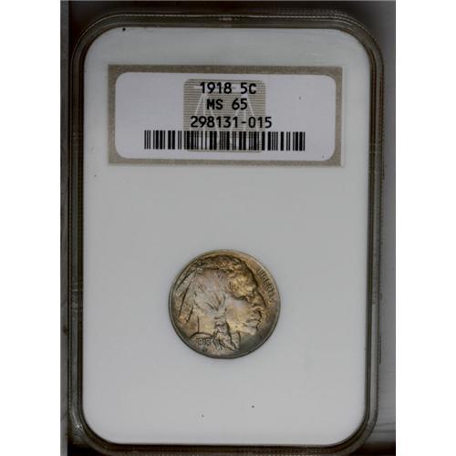 <B>1918<5C> MS65 NGC.</B></I> Pale gold toning over light nickel-gray surfaces with a few developing spots on each side. <BR><BR><B>Important notice:</B> Heritage usually auctions material at the rate of 200-250 lots per hour. On some occasions eBay Live bid software or the Internet may not be able to keep up with the pace of the auction. We recommend placing a realistic absentee bid now as insurance to avoid disappointment. Occasionally the auctioneer may eliminate or reject an eBay Live bid, and the auctioneer may also reopen a lot after the close of the eBay live bidding (usually because we missed an audience bid), and may reject your bid even if it shows you as the winning bidder. By bidding via eBay Live, you agree that Heritage may award the lot to another bidder at its sole discretion under the circumstances described above or any other reasonable circumstances. Since eBay bids are not shown to us until we open the lot on the floor, we treat those bids just like floor bids. In most cases the floor responds before the eBay bid is presented to us, due to Internet lag time, so for consistency we have made it a policy that floor bids are always considered first over tie eBay live bids. Also please note that all Heritage lots purchased through eBay Live carry a 20% Buyer's Premium. Please make sure you read the Terms and Conditions before you bid. This lot is being auctioned in conjunction with a live floor auction by Heritage Galleries & Auctioneers. All final auction and invoice information will be supplied by Heritage Galleries & Auctioneers, and all other information should be considered preliminary. Lot:1055 <BR><BR><B>Winning Notification and Billing:</B> After the FINAL session in this auction is complete, Heritage will send e-mail and snail mail invoices. This process normally takes several days. All final auction and invoice information will be supplied by Heritage Galleries & Auctioneers, and all other information should be considered preliminary. <BR><BR>This auction will be conducted on a live auction floor and over the Internet through eBay Live. If you choose to place an absentee bid, please take a moment to <font color='#0000ff'><u><a href='http://pages.ebay.com/liveauctions/help/before/laabsentee.html'>learn how eBay Live absentee bidding works</a></u></font><font color='#000000'>