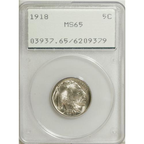 <B>1918 5C MS65 PCGS.</B></I> Caramel-gold and gunmetal-gray endow this lustrous and attractive Gem. A solitary hair-thin mark on the front foreleg is all that prevents an even finer grade. Housed in a first generation holder.<BR><BR><b>Shipping:</b> Coins & Currency (<a target="_blank" href="http://www.heritageauctions.com/common/shipping.php">view shipping information</a>)