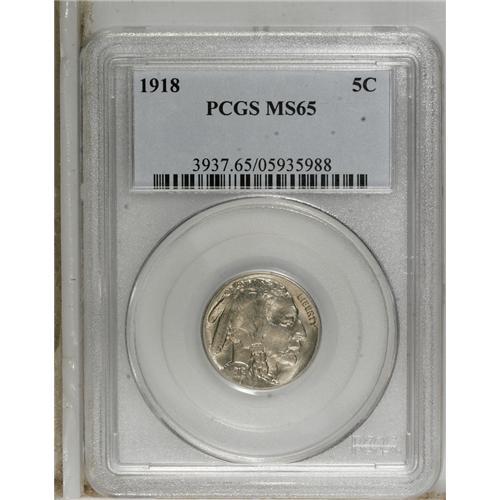 <B>1918 5C MS65 PCGS.</B></I> Lustrous and somewhat softly struck, as usual for this issue. Essentially untoned with a few tiny chatter marks on the bison, and a small number of flyspecks near the peripheral areas. A granular, orange-peel texture is noted on some of the obverse and reverse fields.<BR><BR><b>Shipping:</b> Coins & Currency (<a target="_blank" href="http://www.heritageauctions.com/common/shipping.php">view shipping information</a>)