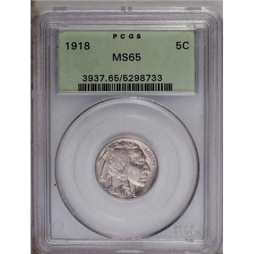 <B>1918<5C> MS65 PCGS.</B></I> This smooth and shimmering older holder Gem features rose and gold tints. LIBERTY is needle-sharp, as is the tail and denomination. A mint-made planchet flake is found on the reverse at 7:30.