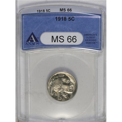<B>1918<5C> MS66 ANACS.</B></I> Mostly brilliant with intense luster and only a whisper of golden and pink color visible particularly over the reverse. Despite its high mintage, the '18 remains a difficult P-mint in MS66 condition.