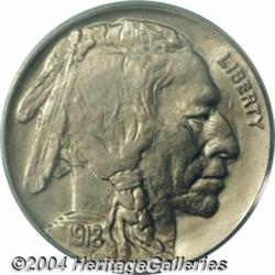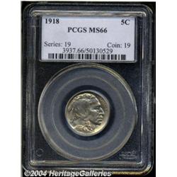 <B>1918<5C> MS66 PCGS.</B></I> Mostly brilliant with intense luster and only a whisper of golden color splashed on either side. Despite its high mintage, a difficult P-mint Buffalo Nickel in Gem condition. Population: 26 in 66, 6 finer (7/04). <BR><BR><B>Important notice:</B> Heritage usually auctions material at the rate of 200-250 lots per hour. On some occasions eBay Live bid software or the Internet may not be able to keep up with the pace of the auction. We recommend placing a realistic absentee bid now as insurance to avoid disappointment. Occasionally the auctioneer may eliminate or reject an eBay Live bid, and the auctioneer may also reopen a lot after the close of the eBay live bidding (usually because we missed an audience bid), and may reject your bid even if it shows you as the winning bidder. By bidding via eBay Live, you agree that Heritage may award the lot to another bidder at its sole discretion under the circumstances described above or any other reasonable circumstances. Since eBay bids are not shown to us until we open the lot on the floor, we treat those bids just like floor bids. In most cases the floor responds before the eBay bid is presented to us, due to Internet lag time, so for consistency we have made it a policy that floor bids are always considered first over tie eBay live bids. Also please note that all Heritage lots purchased through eBay Live carry a 20% Buyer's Premium. Please make sure you read the Terms and Conditions before you bid. </span></font></tr></table></td></tr></table>