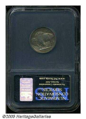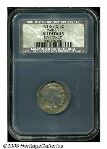 <B>1918/7-D<5C> AU Detailed, Reverse Tooled, NCS.</B></I> FS-016.5. Cleaned, and hairlined as a result, the reverse fields were smoothed by light tooling. A bit softly struck, but actually very well defined for this weak issue, the surfaces display light green, blue, and golden toning on each side. The underdigit is remarkably strong on this coin, probably the earliest die state known, with sharp definition on the 7.