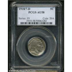 <TABLE cellSpacing=0 cellPadding=0 width="100%" bgColor=#000000 border=0><TBODY><TR><TD width="100%"><TABLE cellSpacing=1 cellPadding=3 width="100%" border=0><TBODY><TR><TD width="100%" bgColor=#79735c><FONT face=arial color=#ffffff size=3><B>Description</B> </FONT></TD></TR><TR><TD width="100%" bgColor=#ffffff><FONT face=arial size=2><B>1918/7-D 5C AU58 PCGS.</B></I> This re-hubbed obverse wasn't discovered until 1931, and by then most overdate nickels had slipped into circulation. High grade examples are quite elusive. This is a well detailed example that shows just the slightest bit of friction over the highpoints. The underdigit is quite strong, and the surfaces overall are noticeably clean with the only mentionable flaw being a shallow planchet crack in the Indian's hair above the knot in the braid. Almost all the original mint luster remains and the surfaces are bright with just the slightest hint of gray-golden patina present. An excellent value at this grade level. Population: 16 in 58, 39 finer (8/03). </FONT></TD></TR></TBODY></TABLE></TD></TR></TBODY></TABLE><BR><A name=PricesRealized></A><TABLE cellSpacing=0 cellPadding=0 width="100%" bgColor=#000000 border=0><TBODY><TR><TD width="100%"><TABLE cellSpacing=1 cellPadding=3 width="100%" border=0><TBODY><TR><TD width="100%" bgColor=#79735c><A name=PR><FONT face=arial color=#ffffff size=3><B>Previous Prices from Heritage Auctions</B> </FONT></A></TD></TR><TR><TD bgColor=#f6f6ed><TABLE cellSpacing=0 cellPadding=0 width="100%" border=1><TBODY><TR><TD align=middle width="33%"><B>Date</B></TD><TD align=middle width="33%"><B>Service</B></TD><TD align=middle width="33%"><B>Price</B></TD></TR><TR bgColor=whitesmoke><TD width="33%"><B>09/01/1999</B></TD><TD width="33%">PCGS</TD><TD width="33%">$8,740.00</TD></TR><TR bgColor=whitesmoke><TD width="33%"><B>08/01/1998</B></TD><TD width="33%">NGC</TD><TD width="33%">$14,950.00</TD></TR></TBODY></TABLE></TD></TR><TR><TD bgColor=#ffffff><FONT face=arial size=1 ?>PLEASE NOTE: All prices realized reflect the final hammer price PLUS the buyer's premium in auctions that charge a buyer's premium. Each item has a notation at the top of the listing indicating whether that lot included a buyer's premium. Example: A item that sells with a final hammer price of $100 and a 20% buyer's premium will display with a price realized of $120. All information listed is intended to be as accurate as possible, but errors are possible. Please use this guide carefully and inform us of any inaccuracies. </FONT></TD></TR></TBODY></TABLE></TD></TR></TBODY></TABLE><BR><TABLE cellSpacing=0 cellPadding=0 width="100%" bgColor=#000000 border=0><TBODY><TR><TD width="100%"><TABLE cellSpacing=1 cellPadding=3 width="100%" border=0><TBODY><TR><TD width="100%" bgColor=#79735c colSpan=6><FONT face=arial color=#ffffff size=3><B>Price Guide*</B> </FONT></TD></TR><TR bgColor=#f6f6ed><TD align=middle><B>Grade</B> </TD><TD align=middle><B>Coin World<BR>(Trends)</B> </TD><TD align=middle><B>Numismedia<BR>Retail</B> </TD><TD align=middle><B>Numismedia<BR>Wholesale</B> </TD><TD align=middle><B>Coin<BR>Universe</B> </TD><TD align=middle><B>Heritage<BR>Value Index</B> </TD></TR><TR bgColor=#ffffff><TD align=middle>55</TD><TD align=right>---</TD><TD align=right>---</TD><TD align=right>$10,500.00</TD><TD align=right>$13,500.00</TD><TD align=right>$11,204.58</TD></TR><TR style="FONT-WEIGHT: bold" bgColor=#cccfdd><TD align=middle>58</TD><TD align=right>$26,500.00</TD><TD align=right>---</TD><TD align=right>$18,500.00</TD><TD align=right>---</TD><TD align=right>$14,409.33</TD></TR><TR bgColor=#ffffff><TD align=middle>60</TD><TD align=right>$30,000.00</TD><TD align=right>---</TD><TD align=right>$21,500.00</TD><TD align=right>$21,000.00</TD><TD align=right>$16,400.00</TD></TR><TR bgColor=#ffffff><TD colSpan=6><FONT size=1>*All information listed is intended to be as accurate as possible, but errors are possible. No item may be returned or refused based on this information which is provided as a service to our customers. You should contact each pricing source directly to determine the accuracy of this information. </FONT></TD></TR></TBODY></TABLE></TD></TR></TBODY></TABLE><BR><TABLE cellSpacing=0 cellPadding=0 width="100%" bgColor=#000000 border=0><TBODY><TR><TD width="100%"><TABLE cellSpacing=1 cellPadding=3 width="100%" border=0><TBODY><TR><TD width="100%" bgColor=#79735c><FONT face=arial color=#ffffff size=3><B>Population Guide</B> </FONT></TD></TR><TR bgColor=#ffffff><TD align=middle><!-- Begin Output of Population Grid--><TABLE cellSpacing=0 cellPadding=0 width="100%" border=0><TBODY><TR><TD vAlign=center><TABLE cellSpacing=0 width="100%" border=1 cellsadding="3"><TBODY><TR><TD vAlign=center><TABLE cellSpacing=0 cellPadding=3 width="100%" border=1><TBODY><TR><TD vAlign=center align=middle bgColor=#f0f1e8 colSpan=2 <CENTER><FONT face=Arial size=2><B>PCGS Pop </B></FONT><CENTER></CENTER></TD><TD vAlign=center align=middle bgColor=#f0f1e8 colSpan=2><CENTER><FONT face=Arial size=2><B>NGC Pop</B></CENTER></FONT></TD></TR><TR><TD vAlign=center><FONT face=Arial size=2>(58)</FONT> </TD><TD vAlign=center align=right><FONT face=Arial size=2>16</FONT> </TD><TD vAlign=center><FONT face=Arial size=2>(58)</FONT> </TD><TD vAlign=center align=right><FONT face=Arial size=2>17</FONT> </TD></TR><TR><TD vAlign=center><FONT face=Arial size=2>(>58)</FONT> </TD><TD vAlign=center align=right><FONT face=Arial size=2>39</FONT> </TD><TD vAlign=center><FONT face=Arial size=2>(>58)</FONT> </TD><TD vAlign=center align=right><FONT face=Arial size=2>30</FONT> </TD></TR></TBODY></TABLE></TD></TR></TBODY></TABLE></TD></TR></TBODY></TABLE><!-- End Output of Population Grid--> Important notice: Heritage usually auctions material at the rate of 200-250 lots per hour. On some occasions eBay Live bid software or the Internet may not be able to keep up with the pace of the auction. We recommend placing a realistic absentee bid now as insurance to avoid disappointment. Occasionally the