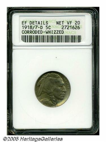 1918/7-D 5C --Corroded, Whizzed--ANACS. XF Detail
