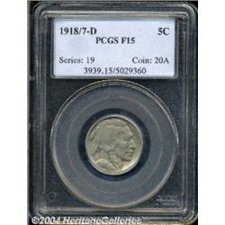 <table><tbody><tr><td><table> <TR><TD width="100%"><TABLE cellSpacing=1 cellPadding=3 width="100%" border=0><TBODY><TR><TD width="100%" bgColor=#79735c><FONT face=arial color=#ffffff size=3><B>Description</B> </FONT></TD></TR><TR><TD width="100%" bgColor=#ffffff><FONT face=arial size=2><B>1918/7-D 5C Fine 15 PCGS.</B></I> The underdigit is actually quite strong on this extensively but evenly worn overdate. Original light gray surfaces with no obvious marks on either side. For the budget-minded collector this piece would be hard to beat. </FONT></TD></TR></TBODY></TABLE></TD></TR></TBODY></TABLE><BR><A name=PricesRealized></A><TABLE cellSpacing=0 cellPadding=0 width="100%" bgColor=#000000 border=0><TBODY><TR><TD width="100%"><TABLE cellSpacing=1 cellPadding=3 width="100%" border=0><TBODY><TR><TD width="100%" bgColor=#79735c><A name=PR><FONT face=arial color=#ffffff size=3><B>Previous Prices from Heritage Auctions</B> </FONT></A></TD></TR><TR><TD bgColor=#f6f6ed><TABLE cellSpacing=0 cellPadding=0 width="100%" border=1><TBODY><TR><TD align=middle width="33%"><B>Date</B></TD><TD align=middle width="33%"><B>Service</B></TD><TD align=middle width="33%"><B>Price</B></TD></TR><TR bgColor=whitesmoke><TD width="33%"><B>08/06/2003</B></TD><TD width="33%">PCGS</TD><TD width="33%">$2,645.00</TD></TR><TR bgColor=whitesmoke><TD width="33%"><B>08/07/1998</B></TD><TD width="33%">PCGS</TD><TD width="33%">$805.00</TD></TR><TR bgColor=whitesmoke><TD width="33%"><B>06/01/1996</B></TD><TD width="33%">PCGS</TD><TD width="33%">$770.00</TD></TR></TBODY></TABLE></TD></TR><TR><TD bgColor=#ffffff><FONT face=arial size=1 ?>PLEASE NOTE: All prices realized reflect the final hammer price PLUS the buyer's premium in auctions that charge a buyer's premium. Each item has a notation at the top of the listing indicating whether that lot included a buyer's premium. Example: A item that sells with a final hammer price of $100 and a 20% buyer's premium will display with a price realized of $120. All information listed is intended to be as accurate as possible, but errors are possible. Please use this guide carefully and inform us of any inaccuracies. </FONT></TD></TR></TBODY></TABLE></TD></TR></TBODY></TABLE><BR><TABLE cellSpacing=0 cellPadding=0 width="100%" bgColor=#000000 border=0><TBODY><TR><TD width="100%"><TABLE cellSpacing=1 cellPadding=3 width="100%" border=0><TBODY><TR><TD width="100%" bgColor=#79735c colSpan=6><FONT face=arial color=#ffffff size=3><B>Price Guide*</B> </FONT></TD></TR><TR bgColor=#f6f6ed><TD align=middle><B>Grade</B> </TD><TD align=middle><B>Coin World<BR>(Trends)</B> </TD><TD align=middle><B>Numismedia<BR>Retail</B> </TD><TD align=middle><B>Numismedia<BR>Wholesale</B> </TD><TD align=middle><B>Coin<BR>Universe</B> </TD><TD align=middle><B>Heritage<BR>Value Index</B> </TD></TR><TR bgColor=#ffffff><TD align=middle>12</TD><TD align=right>$2,500.00</TD><TD align=right>---</TD><TD align=right>$1,150.00</TD><TD align=right>$2,250.00</TD><TD align=right>$1,531.88</TD></TR><TR style="FONT-WEIGHT: bold" bgColor=#cccfdd><TD align=middle>15</TD><TD align=right>---</TD><TD align=right>---</TD><TD align=right>---</TD><TD align=right>---</TD><TD align=right>$2,311.33</TD></TR><TR bgColor=#ffffff><TD align=middle>20</TD><TD align=right>$5,000.00</TD><TD align=right>---</TD><TD align=right>$1,900.00</TD><TD align=right>---</TD><TD align=right>$3,249.17</TD></TR><TR bgColor=#ffffff><TD colSpan=6><FONT size=1>*All information listed is intended to be as accurate as possible, but errors are possible. No item may be returned or refused based on this information which is provided as a service to our customers. You should contact each pricing source directly to determine the accuracy of this information. </FONT></TD></TR></TBODY></TABLE></TD></TR></TBODY></TABLE><BR><TABLE cellSpacing=0 cellPadding=0 width="100%" bgColor=#000000 border=0><TBODY><TR><TD width="100%"><TABLE cellSpacing=1 cellPadding=3 width="100%" border=0><TBODY><TR><TD width="100%" bgColor=#79735c><FONT face=arial color=#ffffff size=3><B>Population Guide</B> </FONT></TD></TR><TR bgColor=#ffffff><TD align=middle><!-- Begin Output of Population Grid--><TABLE cellSpacing=0 cellPadding=0 width="100%" border=0><TBODY><TR><TD vAlign=center><TABLE cellSpacing=0 width="100%" border=1 cellsadding="3"><TBODY><TR><TD vAlign=center><TABLE cellSpacing=0 cellPadding=3 width="100%" border=1><TBODY><TR><TD vAlign=center align=middle bgColor=#f0f1e8 colSpan=2 <CENTER><FONT face=Arial size=2><B>PCGS Pop </B></FONT><CENTER></CENTER></TD><TD vAlign=center align=middle bgColor=#f0f1e8 colSpan=2><CENTER><FONT face=Arial size=2><B>NGC Pop</B></CENTER></FONT></TD></TR><TR><TD vAlign=center><FONT face=Arial size=2>(15)</FONT> </TD><TD vAlign=center align=right><FONT face=Arial size=2>46</FONT> </TD><TD vAlign=center><FONT face=Arial size=2>(15)</FONT> </TD><TD vAlign=center align=right><FONT face=Arial size=2>16</FONT> </TD></TR><TR><TD vAlign=center><FONT face=Arial size=2>(>15)</FONT> </TD><TD vAlign=center align=right><FONT face=Arial size=2>201</FONT> </TD><TD vAlign=center><FONT face=Arial size=2>(>15)</FONT> </TD><TD vAlign=center align=right><FONT face=Arial size=2>108</FONT> </TD></TR></TBODY></TABLE></TD></TR></TBODY></TABLE></TD></TR></TBODY></TABLE><!-- End Output of Population Grid--></TD></TR></TBODY></TABLE></TD></TR></TBODY></TABLE><BR><TABLE cellSpacing=0 cellPadding=0 width="100%" bgColor=#000000 border=0><TBODY><TR> <font color='#000000'><span style='background-color: #FFFFFF'><td bgcolor='#FFFFFE'> Important notice: Heritage usually auctions material at the rate of 200-250 lots per hour. On some occasions eBay Live bid software or the Internet may not be able to keep up with the pace of the auction. We recommend placing a realistic absentee bid now as insurance to avoid disappointment. Occasionally the auctioneer may eliminate or reject an eBay Live bid, and the auctioneer may also reopen a lot after the close of the eBay live bidding (usually because we missed
