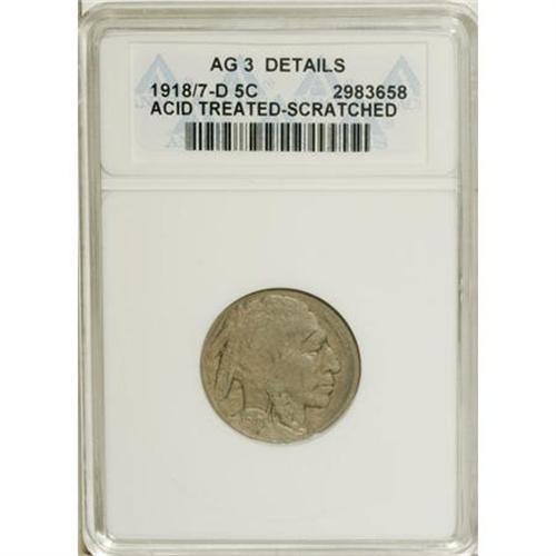<B>1918/7-D 5C --Acid Treated, Scratched--ANACS. AG3 Details.</B></I> NGC Census: (5/427). PCGS Population (11/791). Mintage: 8,362,000. (#3939)<BR><BR><b>Shipping:</b> Coins & Currency (<a target="_blank" href="http://www.heritageauctions.com/common/shipping.php">view shipping information</a>)
