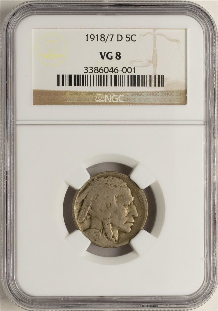 One 1918/7-D Buffalo Nickel Coin NGC VG8. NGC Certified.