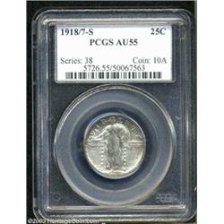 <table><tr><td><TABLE cellSpacing=0 cellPadding=0 width="100%" bgColor=#000000 border=0><TBODY> <TR><TD width="100%"><TABLE cellSpacing=1 cellPadding=3 width="100%" border=0><TBODY><TR><TD width="100%" bgColor=#79735c><FONT face=arial color=#ffffff size=3><B>Description</B> </FONT></TD></TR><TR><TD width="100%" bgColor=#ffffff><FONT face=arial size=2><B>1918/7-S 25C AU55 PCGS.</B></I> A lightly toned, high-grade example of this perennially popular overdate quarter. Well detailed overall, save for the tops of the digits of the date. Even though, the underdigit (7) is clearly visible. Overdate quarters are among the rarest coins of the 20th century as they were struck from a single pair of dies, thus drastically limiting their availability in terms of absolute numbers available. The overdate feature was not discovered until 1937, almost twenty years after the date's release into circulation. </FONT></TD></TR></TBODY></TABLE></TD></TR></TBODY></TABLE><BR><A name=PricesRealized></A><TABLE cellSpacing=0 cellPadding=0 width="100%" bgColor=#000000 border=0><TBODY><TR><TD width="100%"><TABLE cellSpacing=1 cellPadding=3 width="100%" border=0><TBODY><TR><TD width="100%" bgColor=#79735c><A name=PR><FONT face=arial color=#ffffff size=3><B>Previous Prices from Heritage Auctions</B> </FONT></A></TD></TR><TR><TD bgColor=#f6f6ed><TABLE cellSpacing=0 cellPadding=0 width="100%" border=1><TBODY><TR><TD align=middle width="33%"><B>Date</B></TD><TD align=middle width="33%"><B>Service</B></TD><TD align=middle width="33%"><B>Price</B></TD></TR><TR bgColor=whitesmoke><TD width="33%"><B>10/06/2001</B></TD><TD width="33%">PCGS</TD><TD width="33%">$8,337.50</TD></TR><TR bgColor=whitesmoke><TD width="33%"><B>08/07/2000</B></TD><TD width="33%">NGC</TD><TD width="33%">$7,762.50</TD></TR><TR bgColor=whitesmoke><TD width="33%"><B>08/17/1996</B></TD><TD width="33%">PCGS</TD><TD width="33%">$5,500.00</TD></TR><TR bgColor=whitesmoke><TD width="33%"><B>06/01/2001</B></TD><TD width="33%">NGC</TD><TD width="33%">$7,130.00</TD></TR><TR bgColor=whitesmoke><TD width="33%"><B>09/01/1996</B></TD><TD width="33%">PCGS</TD><TD width="33%">$7,975.00</TD></TR></TBODY></TABLE></TD></TR><TR><TD bgColor=#ffffff><FONT face=arial size=1 ?>PLEASE NOTE: All prices realized reflect the final hammer price PLUS the buyer's premium in auctions that charge a buyer's premium. Each item has a notation at the top of the listing indicating whether that lot included a buyer's premium. Example: A item that sells with a final hammer price of $100 and a 20% buyer's premium will display with a price realized of $120. All information listed is intended to be as accurate as possible, but errors are possible. Please use this guide carefully and inform us of any inaccuracies. </FONT></TD></TR></TBODY></TABLE></TD></TR></TBODY></TABLE><BR><TABLE cellSpacing=0 cellPadding=0 width="100%" bgColor=#000000 border=0><TBODY><TR><TD width="100%"><TABLE cellSpacing=1 cellPadding=3 width="100%" border=0><TBODY><TR><TD width="100%" bgColor=#79735c colSpan=6><FONT face=arial color=#ffffff size=3><B>Price Guide*</B> </FONT></TD></TR><TR bgColor=#f6f6ed><TD align=middle><B>Grade</B> </TD><TD align=middle><B>Coin World<BR>(Trends)</B> </TD><TD align=middle><B>Numismedia<BR>Retail</B> </TD><TD align=middle><B>Numismedia<BR>Wholesale</B> </TD><TD align=middle><B>Coin<BR>Universe</B> </TD><TD align=middle><B>Heritage<BR>Value Index</B> </TD></TR><TR bgColor=#ffffff><TD align=middle>53</TD><TD align=right>---</TD><TD align=right>---</TD><TD align=right>$7,225.00</TD><TD align=right>---</TD><TD align=right>$7,301.77</TD></TR><TR style="FONT-WEIGHT: bold" bgColor=#cccfdd><TD align=middle>55</TD><TD align=right>---</TD><TD align=right>---</TD><TD align=right>$7,675.00</TD><TD align=right>$10,000.00</TD><TD align=right>$7,746.72</TD></TR><TR bgColor=#ffffff><TD align=middle>58</TD><TD align=right>$11,500.00</TD><TD align=right>---</TD><TD align=right>$8,875.00</TD><TD align=right>---</TD><TD align=right>$8,191.67</TD></TR><TR bgColor=#ffffff><TD colSpan=6><FONT size=1>*All information listed is intended to be as accurate as possible, but errors are possible. No item may be returned or refused based on this information which is provided as a service to our customers. You should contact each pricing source directly to determine the accuracy of this information. </FONT></TD></TR></TBODY></TABLE></TD></TR></TBODY></TABLE><BR><TABLE cellSpacing=0 cellPadding=0 width="100%" bgColor=#000000 border=0><TBODY><TR><TD width="100%"><TABLE cellSpacing=1 cellPadding=3 width="100%" border=0><TBODY><TR><TD width="100%" bgColor=#79735c><FONT face=arial color=#ffffff size=3><B>Population Guide</B> </FONT></TD></TR><TR bgColor=#ffffff><TD align=middle><!-- Begin Output of Population Grid--><TABLE cellSpacing=0 cellPadding=0 width="100%" border=0><TBODY><TR><TD vAlign=center><TABLE cellSpacing=0 width="100%" border=1 cellsadding="3"><TBODY><TR><TD vAlign=center><TABLE cellSpacing=0 cellPadding=3 width="100%" border=1><TBODY><TR><TD vAlign=center align=middle bgColor=#f0f1e8 colSpan=2 <CENTER><FONT face=Arial size=2><B>PCGS Pop </B></FONT><CENTER></CENTER></TD><TD vAlign=center align=middle bgColor=#f0f1e8 colSpan=2><CENTER><FONT face=Arial size=2><B>NGC Pop</B></CENTER></FONT></TD></TR><TR><TD vAlign=center><FONT face=Arial size=2>(55)</FONT> </TD><TD vAlign=center align=right><FONT face=Arial size=2>42</FONT> </TD><TD vAlign=center><FONT face=Arial size=2>(55)</FONT> </TD><TD vAlign=center align=right><FONT face=Arial size=2>10</FONT> </TD></TR><TR><TD vAlign=center><FONT face=Arial size=2>(>55)</FONT> </TD><TD vAlign=center align=right><FONT face=Arial size=2>113</FONT> </TD><TD vAlign=center><FONT face=Arial size=2>(>55)</FONT> </TD><TD vAlign=center align=right><FONT face=Arial size=2>81</FONT> </TD></TR></TBODY></TABLE></TD></TR></TBODY></TABLE></TD></TR></TBODY></TABLE><!-- End Output of Population Grid--></TD></TR></TBODY></TABLE></TD></TR></TBODY></TABLE><BR><TABLE cellSpacing=0 cellPadding=0 w