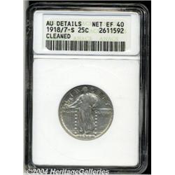 <B>1918/7-S<25C>--Cleaned--ANACS. AU Details, Net XF40.</B></I> The diagonal stroke of the underdigit 7 is prominent within the lower loop of the 8 in the date. A lustrous silver-gray example with slightly bright surfaces and only moderate rub on Liberty's leg, breast, and shield. This World War I hubbed overdate is a major obstacle to the completion of the series. <BR><BR><B>Important notice:</B> Heritage usually auctions material at the rate of 200-250 lots per hour. On some occasions eBay Live bid software or the Internet may not be able to keep up with the pace of the auction. We recommend placing a realistic absentee bid now as insurance to avoid disappointment. Occasionally the auctioneer may eliminate or reject an eBay Live bid, and the auctioneer may also reopen a lot after the close of the eBay live bidding (usually because we missed an audience bid), and may reject your bid even if it shows you as the winning bidder. By bidding via eBay Live, you agree that Heritage may award the lot to another bidder at its sole discretion under the circumstances described above or any other reasonable circumstances. Since eBay bids are not shown to us until we open the lot on the floor, we treat those bids just like floor bids. In most cases the floor responds before the eBay bid is presented to us, due to Internet lag time, so for consistency we have made it a policy that floor bids are always considered first over tie eBay live bids. Also please note that all Heritage lots purchased through eBay Live carry a 20% Buyer's Premium. Please make sure you read the Terms and Conditions before you bid. </span></font></tr></table></td></tr></table>