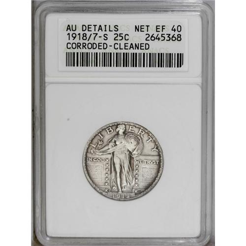 1918/7-S 25C --Corroded, Cleaned--ANACS. AU Details, Ne 1918/7-S[25C]--Corroded, Cleaned--ANACS. AU