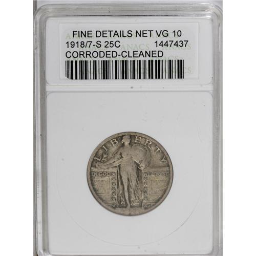 1918/7-S 25C --Corroded, Cleaned--ANACS. Fine Details,