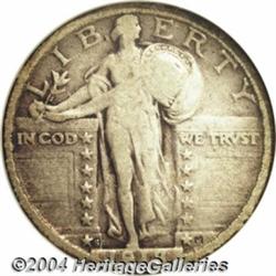 <B>1918/7-S<25C> Fine 15 NGC.</B></I> FS-008.5. This popular overdate quarter is toned in a light to medium gray color. The underdigit is slightly blurry but visible. Other than normal circulation, this piece is very clean and relatively free of problems. A pleasing specimen for a circulated Standing Liberty quarter set. <BR><BR><B>Important notice:</B> Heritage usually auctions material at the rate of 200-250 lots per hour. On some occasions eBay Live bid software or the Internet may not be able to keep up with the pace of the auction. We recommend placing a realistic absentee bid now as insurance to avoid disappointment. Occasionally the auctioneer may eliminate or reject an eBay Live bid, and the auctioneer may also reopen a lot after the close of the eBay live bidding (usually because we missed an audience bid), and may reject your bid even if it shows you as the winning bidder. By bidding via eBay Live, you agree that Heritage may award the lot to another bidder at its sole discretion under the circumstances described above or any other reasonable circumstances. Since eBay bids are not shown to us until we open the lot on the floor, we treat those bids just like floor bids. In most cases the floor responds before the eBay bid is presented to us, due to Internet lag time, so for consistency we have made it a policy that floor bids are always considered first over tie eBay live bids. Also please note that all Heritage lots purchased through eBay Live carry a 20% Buyer's Premium. Please make sure you read the Terms and Conditions before you bid. </span></font></tr></table></td></tr></table>