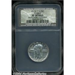 <B>1918/7-S<25C>--Improperly Cleaned--NCS. XF Details.</B></I> Bright silver surfaces and now regaining just a wisp of pale gold toning. Although described as improperly cleaned, this remains a very attractive and desirable example of this overdate that will certainly garner considerable bidding activity.<BR><I>From The Barry Donnell Collection, Part Two.</B></I> <BR><BR><B>Important notice:</B> Heritage usually auctions material at the rate of 200-250 lots per hour. On some occasions eBay Live bid software or the Internet may not be able to keep up with the pace of the auction. We recommend placing a realistic absentee bid now as insurance to avoid disappointment. Occasionally the auctioneer may eliminate or reject an eBay Live bid, and the auctioneer may also reopen a lot after the close of the eBay live bidding (usually because we missed an audience bid), and may reject your bid even if it shows you as the winning bidder. By bidding via eBay Live, you agree that Heritage may award the lot to another bidder at its sole discretion under the circumstances described above or any other reasonable circumstances. Since eBay bids are not shown to us until we open the lot on the floor, we treat those bids just like floor bids. In most cases the floor responds before the eBay bid is presented to us, due to Internet lag time, so for consistency we have made it a policy that floor bids are always considered first over tie eBay live bids. Also please note that all Heritage lots purchased through eBay Live carry a 20% Buyer's Premium. Please make sure you read the Terms and Conditions before you bid. </span></font></tr></table></td></tr></table>