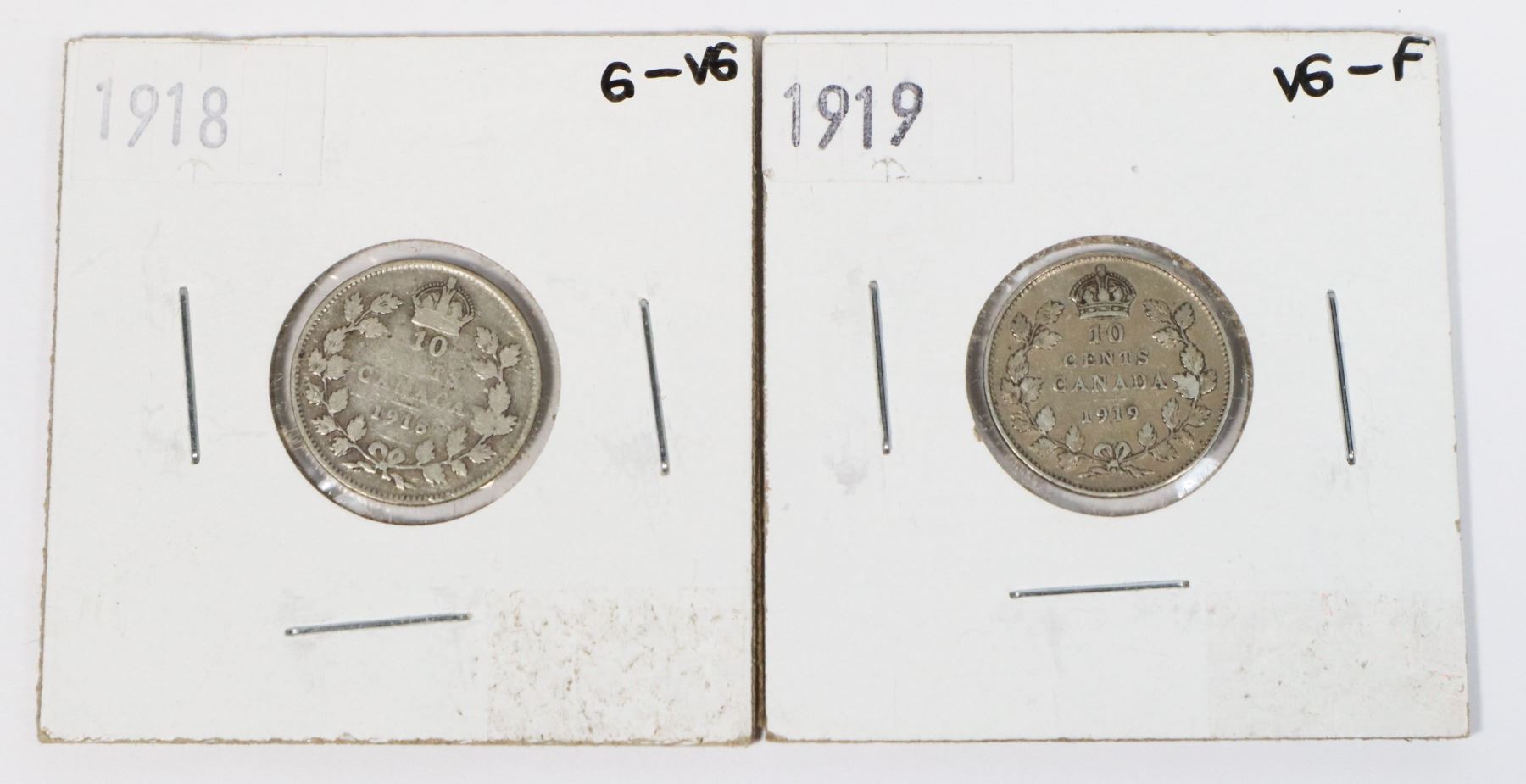 1918 AND 1919 CANADA 10CENT COINS 92.5% SILVER